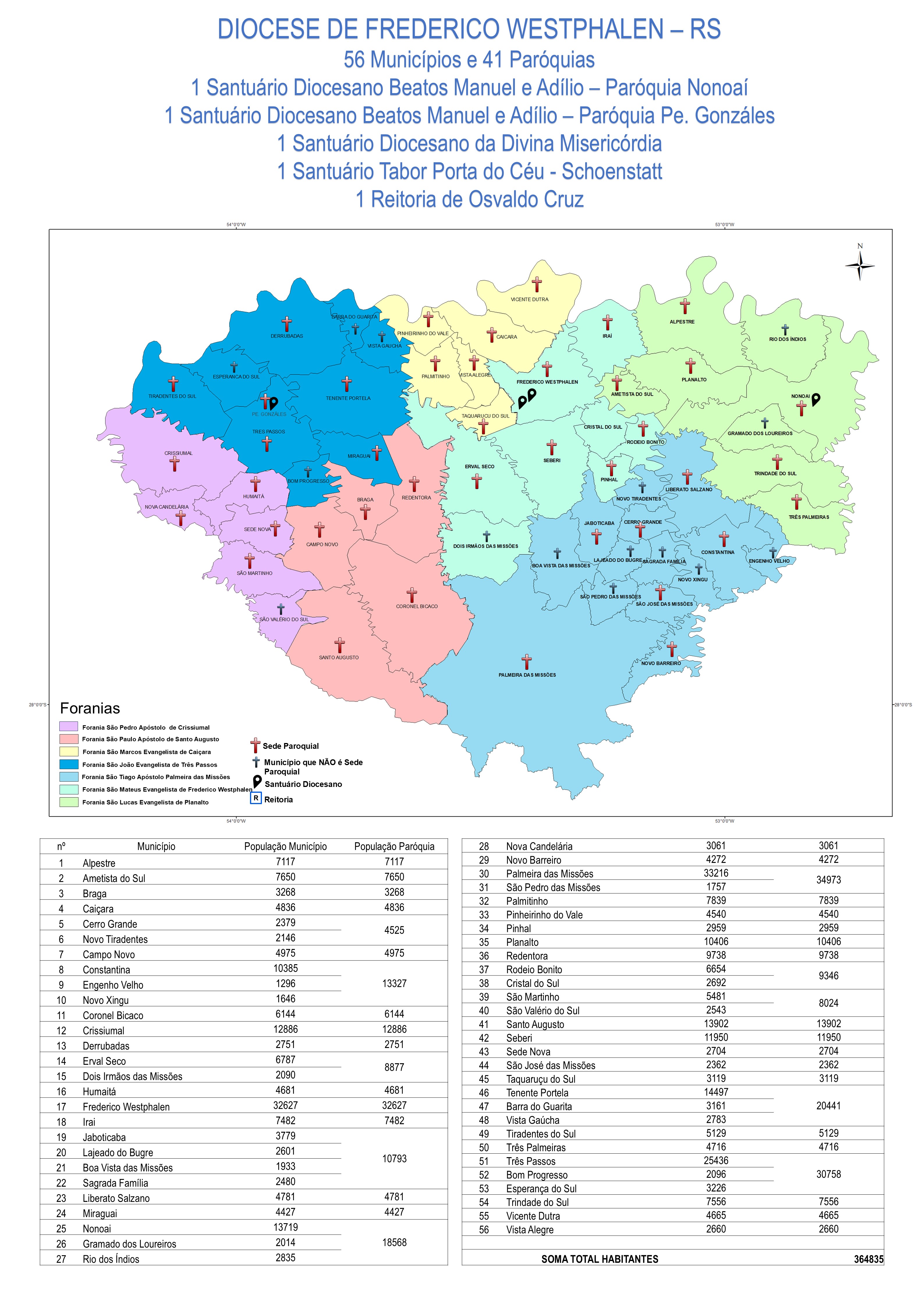 Mapa das Foranias da Diocese de Frederico Westphalen-RS - IBGE