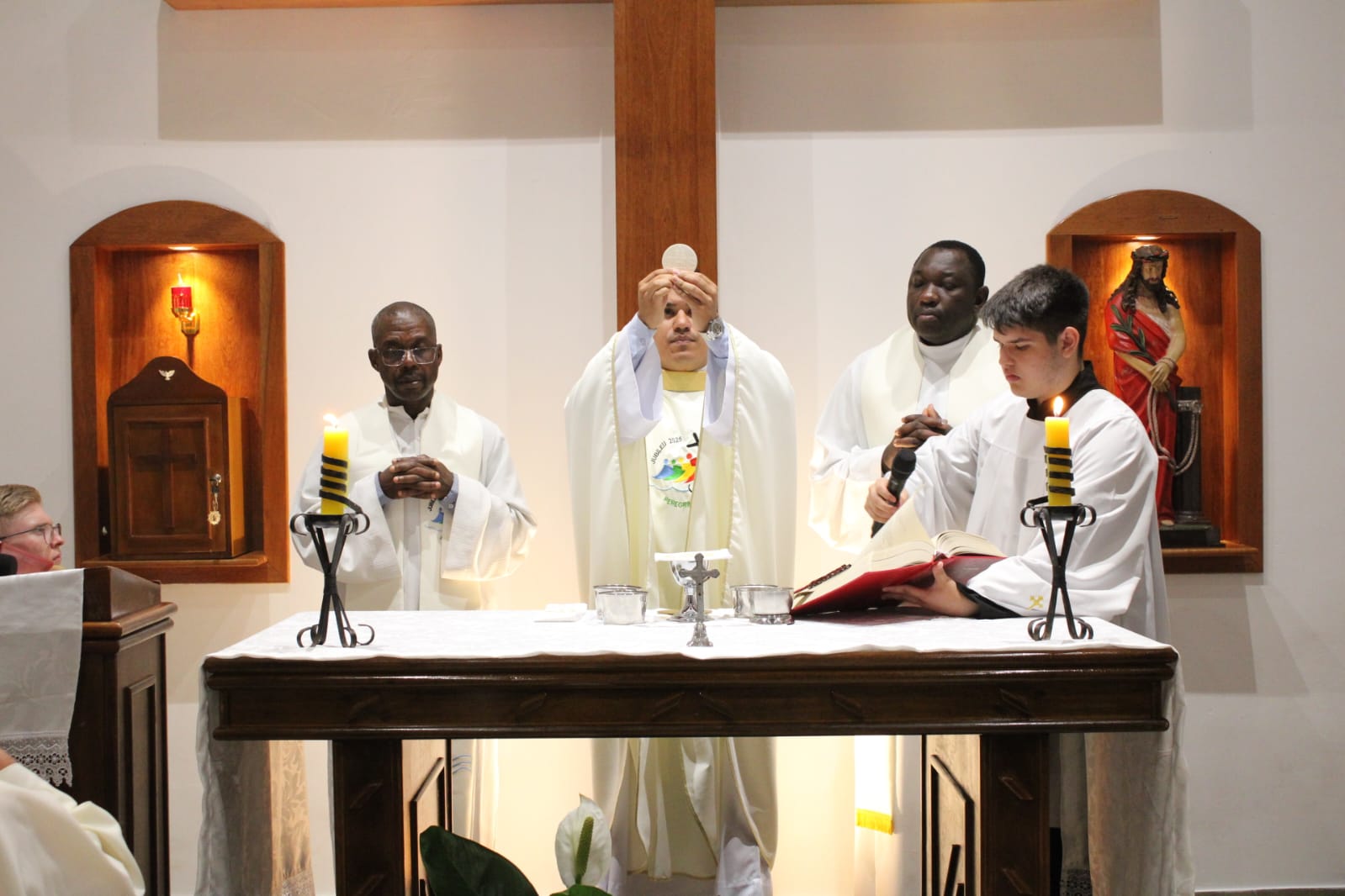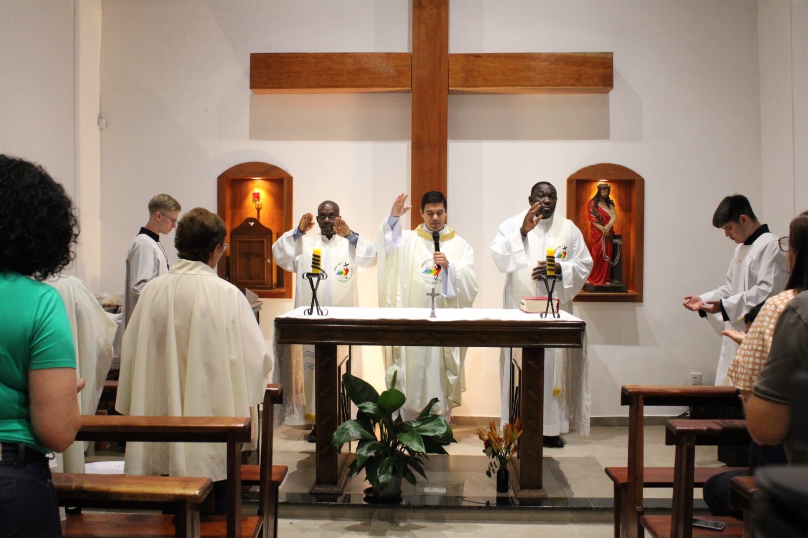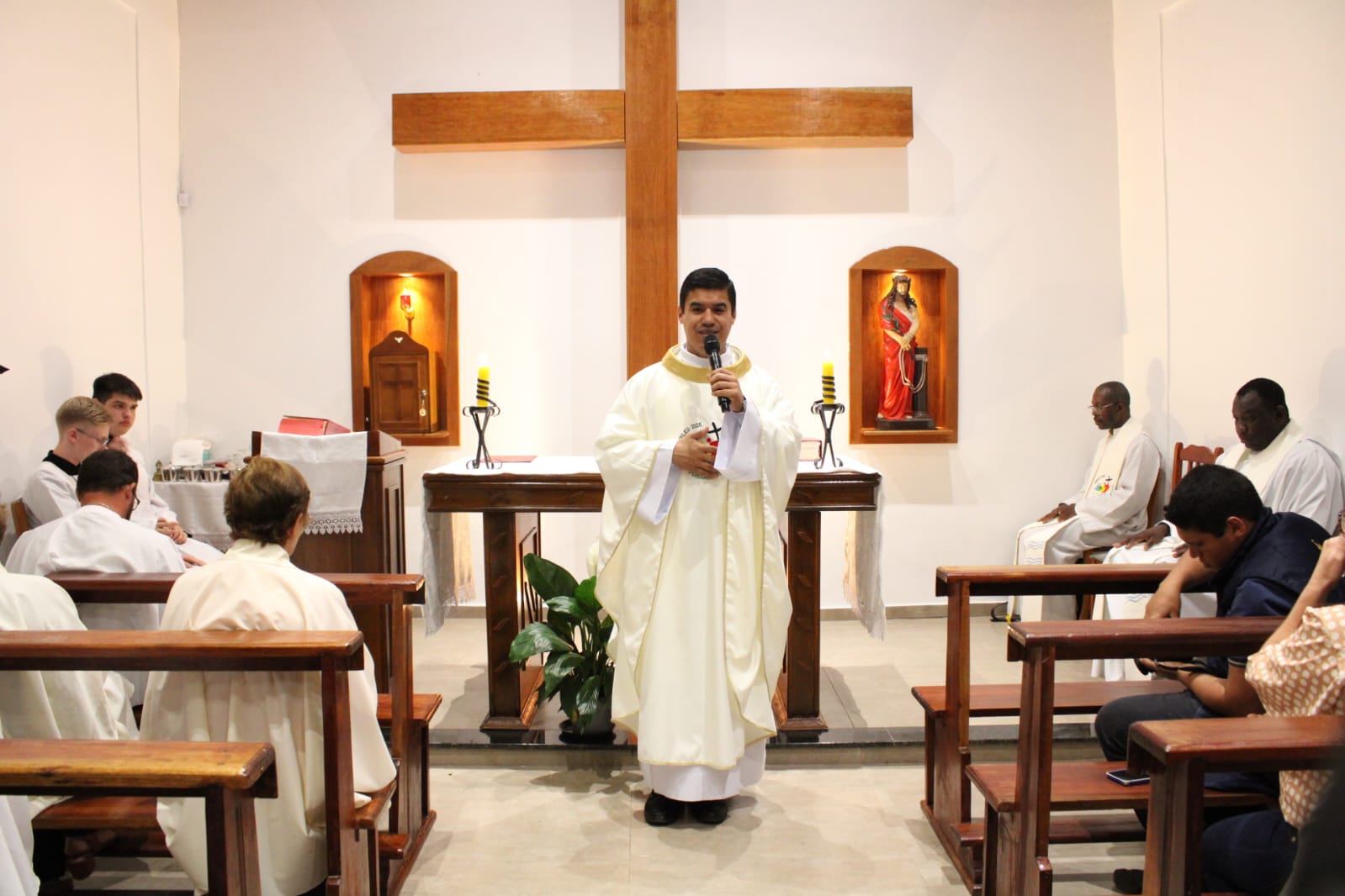 Padre Nildo Moura de Melo, presidiu a Santa Missa, concelebrada pelos vigários Yves Elisma e Haroldo Xavier, na animação o Coral Cantando a Fé.