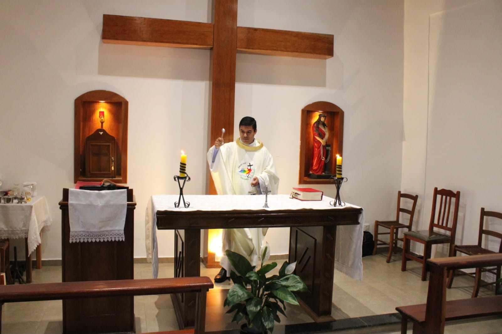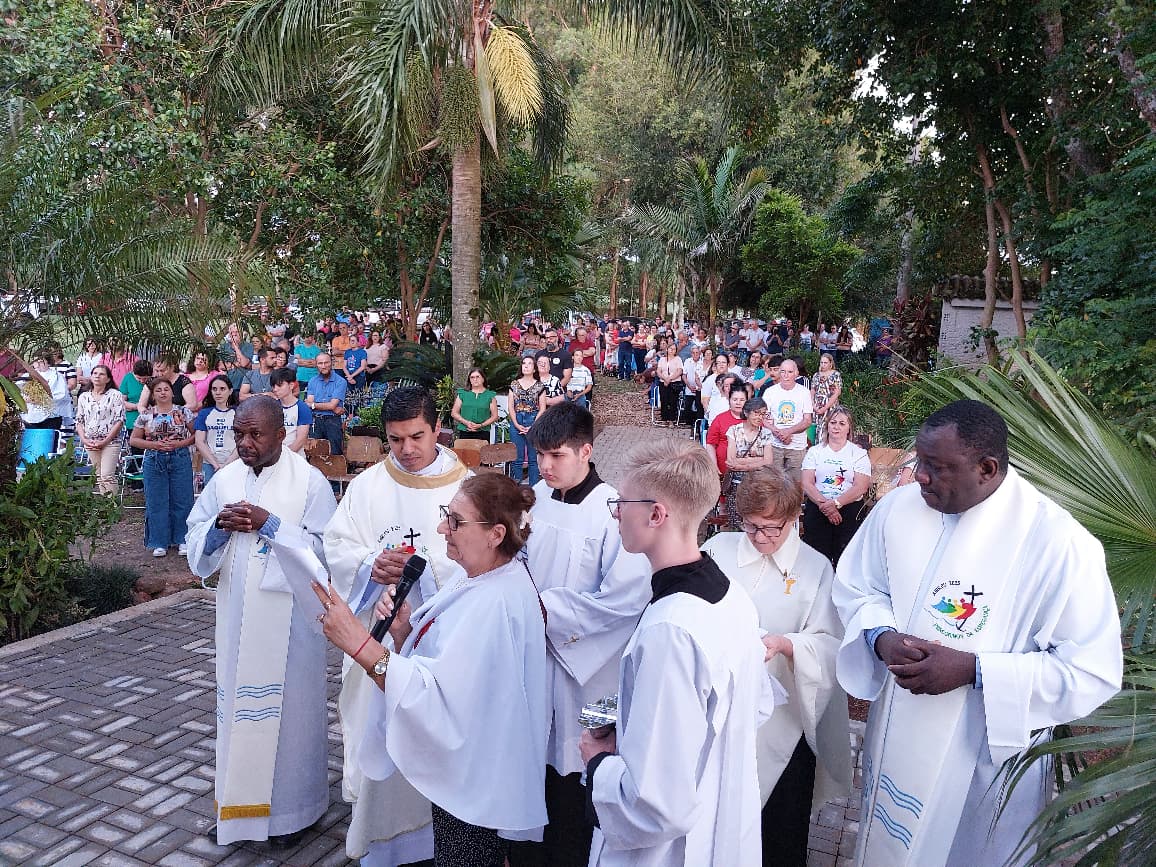 Na homilia, padre Nildo ressaltou os 160 anos da capelinha. Falou: Este é um lugar de peregrinação, oração, bençãos, pequenino, mas ao mesmo tempo tão grandioso, por que aqui, cabe as orações, os risos, as lagrimas de toda a comunidade da Paróquia Santa Antônio e de tantas outras paróquias, que vem aqui com esperança. No Ano Santo, 2025, como é bonito oferecer novamente este lugar santo ao Senhor. Na casa do Senhor habitarei. Quantas vezes, nós preocupados, vemos a imagem do Bom Jesus em nossas mentes, e rezamos. Quando viajamos sentimos que ele está conosco. No Evangelho, Jesus cura os enfermos, e, o povo que o segue com fome. é alimentado por Ele com o pão multiplicado. Quantos pais e familiares trazem seus enfermos até a capelinha do Senhor Bom Jesus, buscando consolo, pedindo saúde para o corpo e espírito. Muitos pedindo trabalho, sabedoria, tranquilidade, equilíbrio, força, coragem. A gente vem até aqui porque sabemos que Jesus é Bom. N’Ele está nossa confiança, nossa esperança.