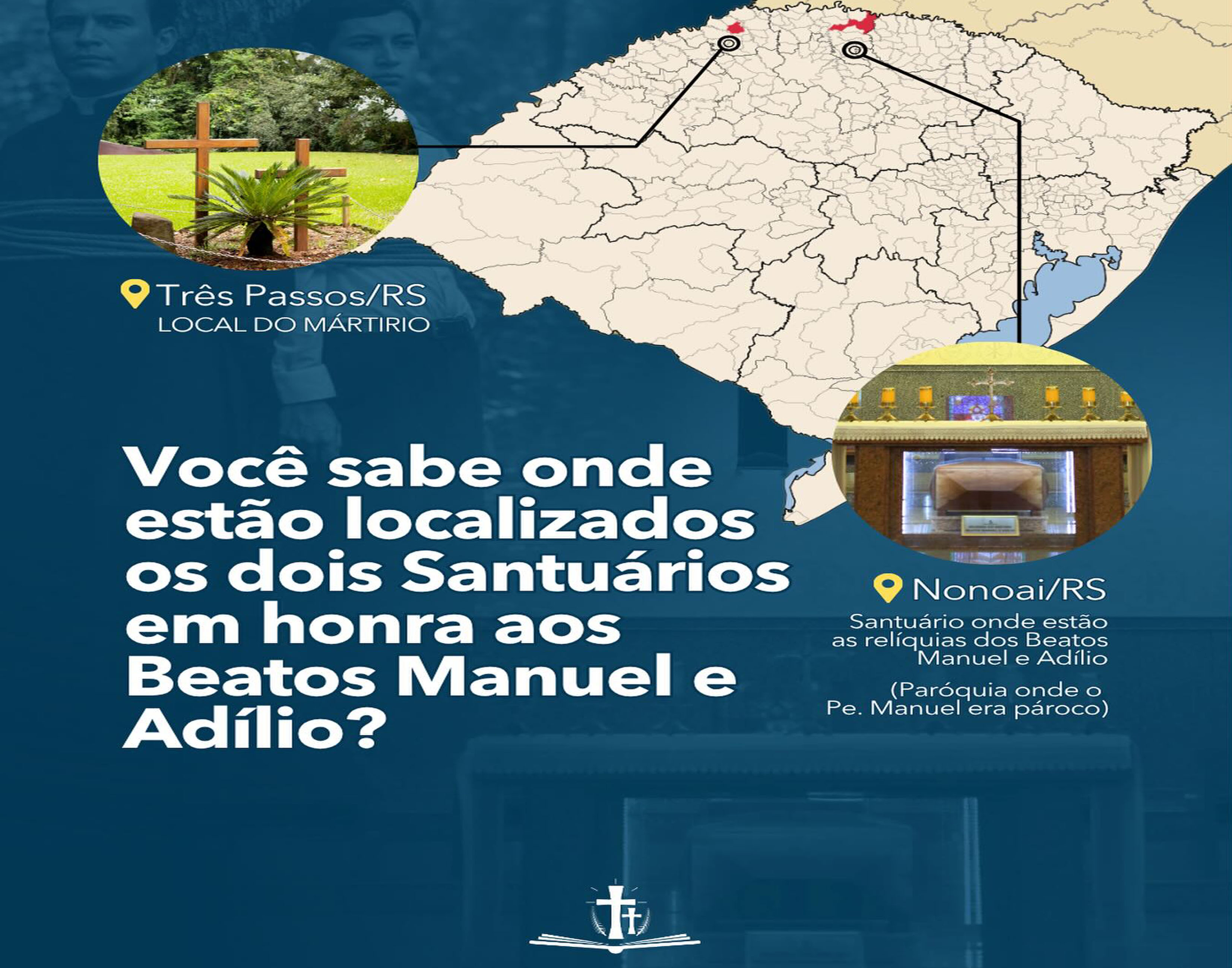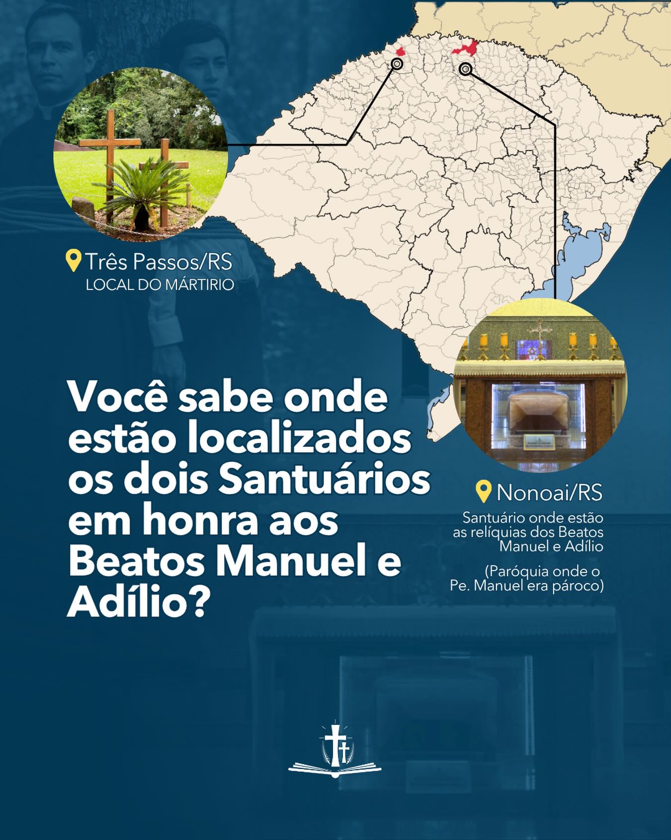 A Diocese de Frederico Westphalen se prepara para viver, dentro de um mês, um dos momentos mais significativos de sua fé e devoção: as Romarias em Honra aos Beatos Manuel e Adílio, padroeiros da Diocese, o padre e o coroinha que derramaram seu sangue por amor e fidelidade a Nosso Senhor Jesus Cristo.