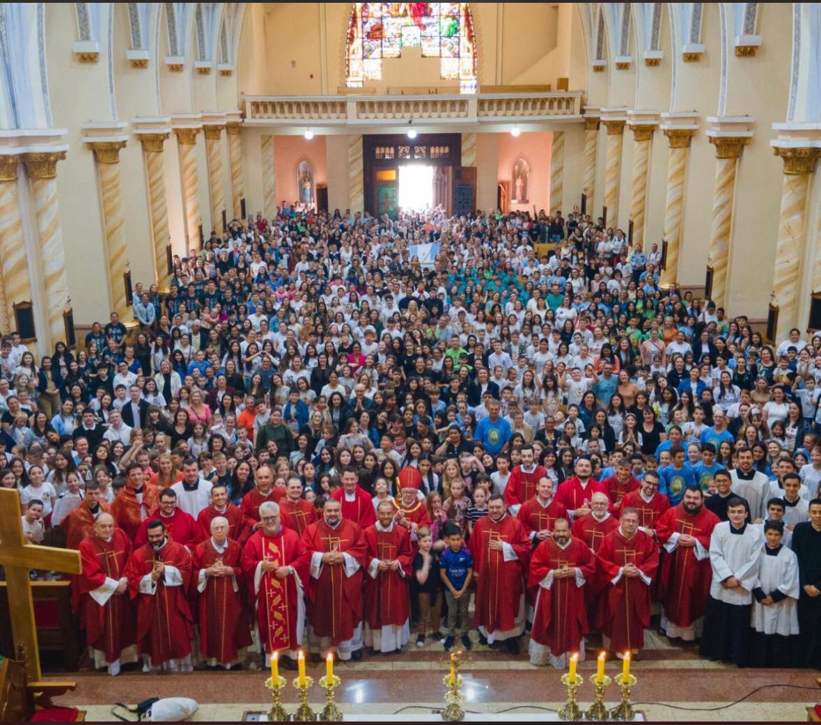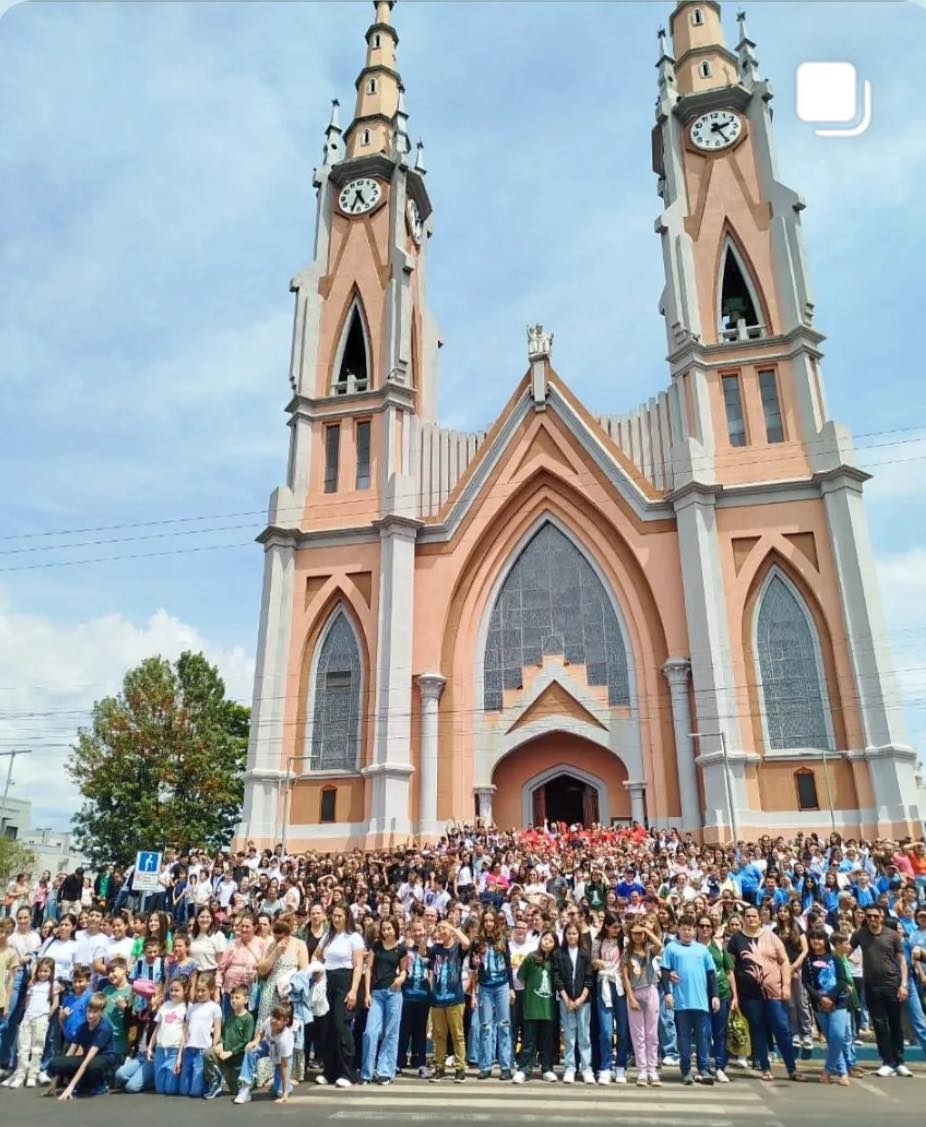 Aconteceu na manhã abençoada do dia 25 de outubro, às 9h30, na Catedral Santo Antônio de Frederico Westphalen, o Segundo Encontrão Diocesano de Coroinhas e Cerimoniários de nossa Diocese. Foi um dia de fé, de comunhão e de muita alegria! Mais de 1.400 coroinhas e cerimoniários estiveram presentes, vindos das diversas paróquias, comunidades e capelas de toda a Diocese, acompanhados de mais de 250 adultos — entre pais, catequistas, coordenadores e responsáveis — que vieram com o coração cheio de gratidão e esperança.