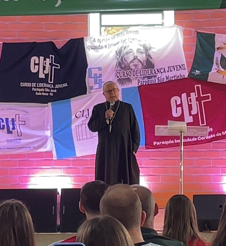 Logo após a acolhida, os jovens foram convidados a um momento muito especial: uma profunda e emocionante palestra de nosso bispo diocesano, Dom Antônio Carlos Rossi Keller, que, com palavras cheias de sabedoria e amor pastoral, encantou e tocou os corações de todos. Falando com a força do Evangelho e o brilho da esperança, Dom Antônio destacou o papel dos jovens na Igreja e no mundo de hoje. Lembrou que o jovem cristão é chamado a ser testemunha da esperança e sinal da presença de Cristo nas famílias, nas escolas, nas comunidades e nas redes sociais. Sua fala foi marcada por entusiasmo, fé e ternura, revelando seu grande carinho pela juventude.