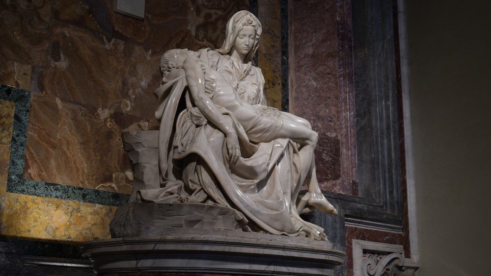 Foto: A escultura da Pietà de Michelangelo captura a profunda compaixão de Maria, que sofre com o Filho